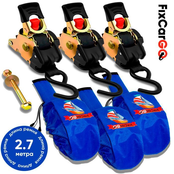 Стяжки для крепления груза автоматические 50 мм. 2,7 м. с чехлами (3 шт.)